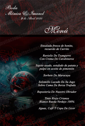 En Rock Invitaciones sabemos lo importante que es que en tu boda cada detalle sea perfecto. Es por esto que entre nuestra gama de productos os ofrecemos la posibilidad de hacer los menús totalmente personalizados. ¡Si has contratado con nosotros las invitaciones podemos hacerte las Minutas a juego! Creamos los diseños personalizados, los imprimimos y te las enviamos a casa.